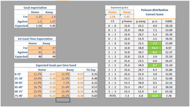 We lay Under 1.5 goals on 30 minutes when the game is 0-0 (English and Dutch fixtures). This is slightly later than most traders might normally look to lay but the stats support increased profitability when trading the goal list if you do so (and it means you are still in the trade later into the game when the occurrence of goals is more likely). Entering on 30 minutes would mean your 0-0 exit point is around 70 minutes. If a goal is scored in this time and you decided to stay in the trade it is likely you would be able to do so until 84/85 minutes (again approximate and depending on the match).